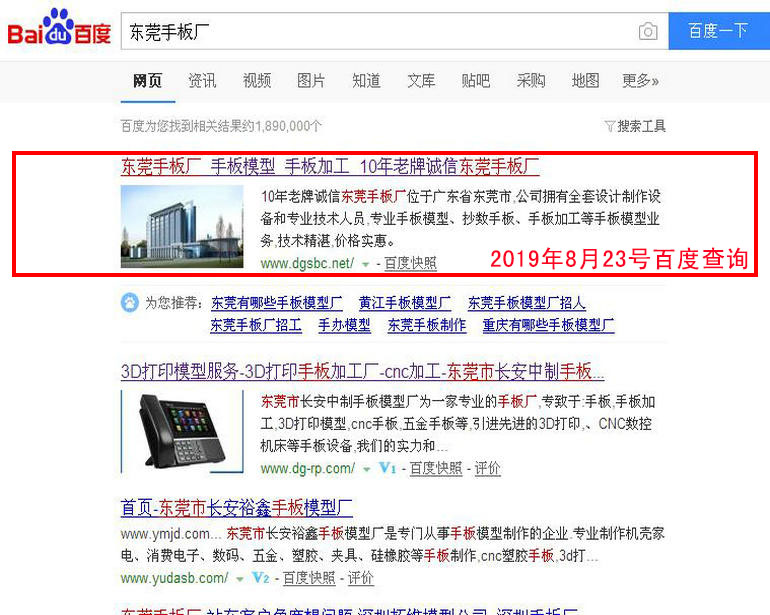 手板廠 百度(PC)自然排名第1名,360搜索、搜狗、手機搜索等均也有比較好的排名...